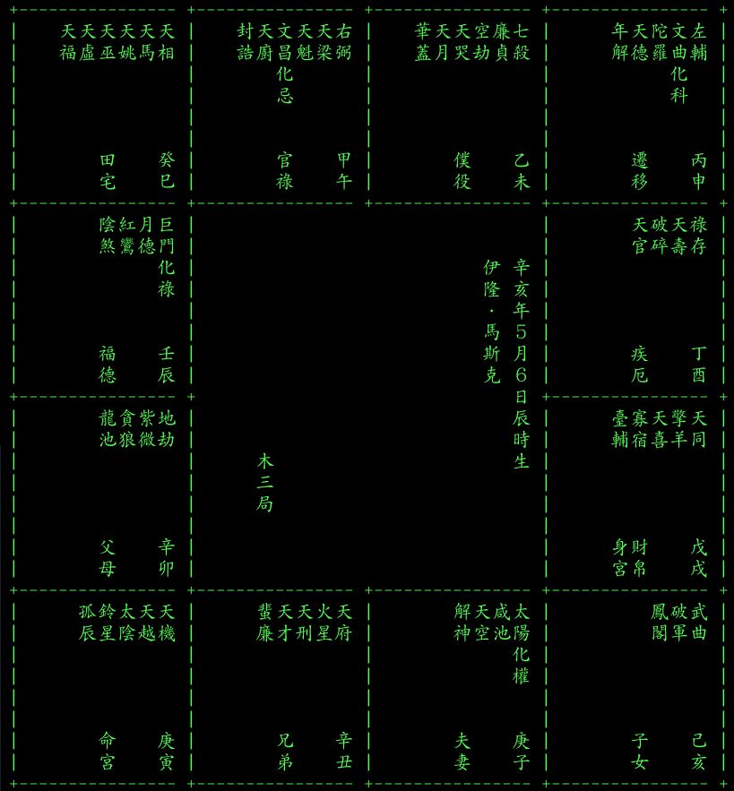 - examples/ 目錄裡面有川普、 馬斯克、 習近平的命盤輸入範例可參考。